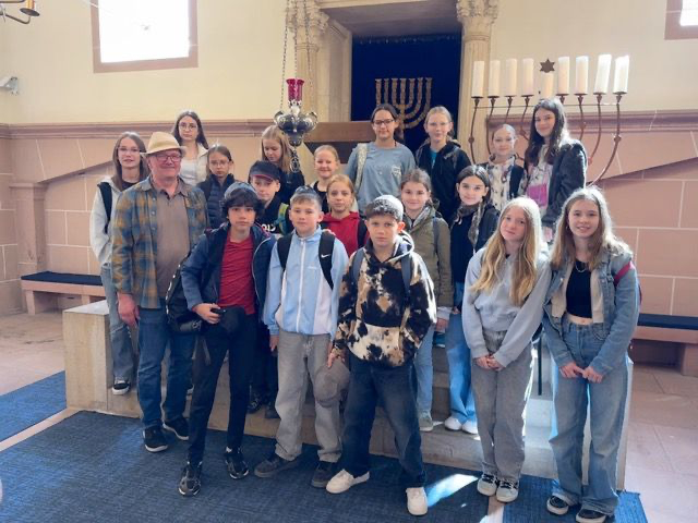 „ Am 9.5.2025 besuchten die Klassen 6b und 6e den ‚Heiligen Sand‘, eine UNESCO-Weltkulturerbestätte in Worms. Frau Neuffer führte uns über den ältesten erhaltenen Judenfriedhof Europas. Dort sind ungefähr 2500 Grabsteine erhalten, wobei die ältesten aus dem 11. Jahrhundert stammen. Die letzte Bestattung fand 1935 statt. Jüdische Gräber werden nicht eingeebnet, sondern die Grabsteine bleiben bestehen. In der jüdischen Tradition legt man Steine anstelle von Blumenschmuck auf die Grabsteine, um die Toten zu ehren. Männer müssen beim Besuch der Gräber eine Kopfbedeckung tragen. Nicht erlaubt ist es, auf dem Friedhof zu joggen, zu feiern, Rad zu fahren oder Hunde auszuführen. Anschließend besuchten wir die romanische Synagoge, eine der bedeutendsten Westeuropas. Sie wurde nach den Verwüstungen im Jahr 1938 von 1958 bis 1961 sorgfältig wiederaufgebaut. Sie hat Kreuzgratgewölbe und Blattkapitelle im Männerbau. Die meisten jüdischen Gottesdienste finden in der Synagoge statt, wobei Frauen von Männern getrennt sitzen. Das Judentum, das es etwa 3500 Jahre gibt, ist die älteste Weltreligion, die nur einen Gott verehrt, nämlich Jahwe. Die Tora, das heilige Buch der Juden, wird in der Synagoge in einem geschmückten Schrank, dem Toraschrein, aufbewahrt. Das ewige Licht (auch Ner Tamid genannt) hing vor dem Toraschrein. Es ist ein Symbol der ständigen Gegenwart Gottes. Zwischen zwei Säulen stand ein Lesepult zum Ausrollen der Tora. Diese Säulen helfen, die Aufmerksamkeit auf den heiligen Raum zu richten. Zeichen des Judentums sind der Davidstern und der siebenarmige Leuchter. Nur der Chanukkaleuchter hat neun Kerzen. Er erinnert an das Wiedereinweihungsfest des heiligen Tempels von Jerusalem. Männer tragen in der Synagoge eine Kippa, um Respekt und Demut gegenüber Gott zu zeigen. Insgesamt haben wir bei der Exkursion viel über jüdisches Leben erfahren.“