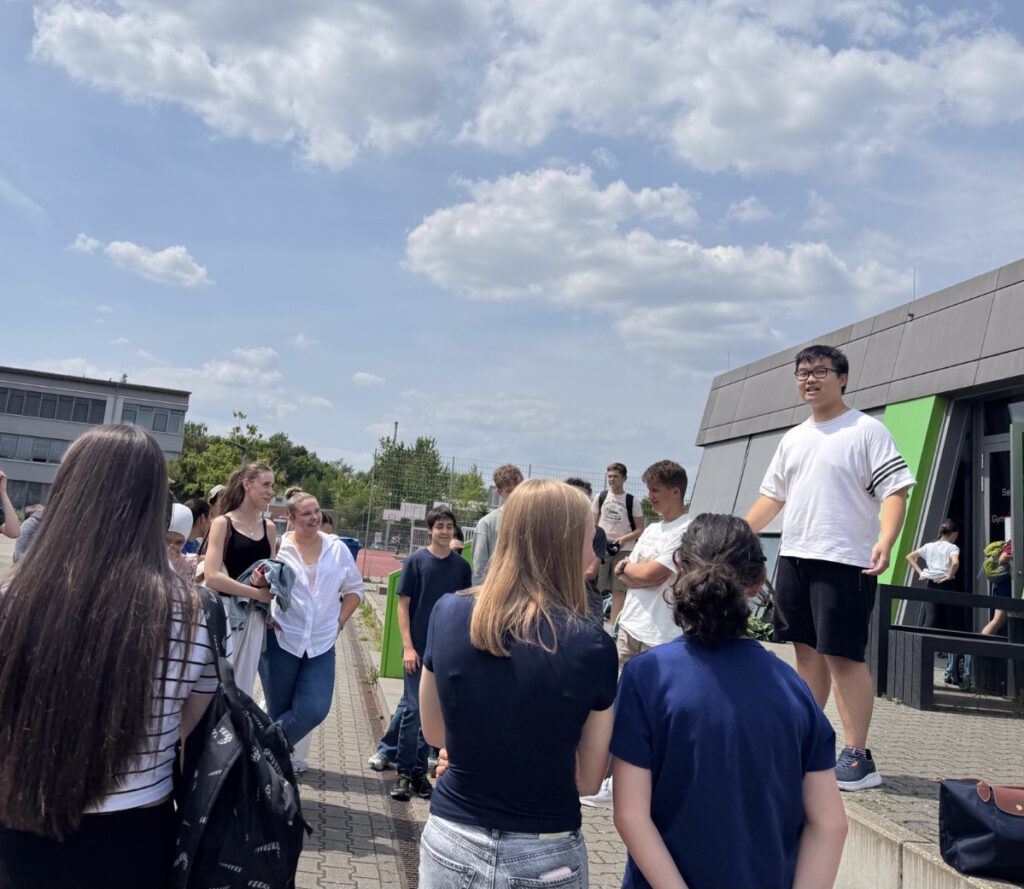 Besonders interessant fanden die neuen SamSe die Tipps, die ihnen die erfahrenen SamSe mit auf den Weg gaben. Pauline Schütz und Helena Christian (MSS 13) hatten uns bereits bei der Anwerbung der neuen SamSe großartig unterstützt. Bei der Ausbildung beantworteten sie aufkommende Fragen und ließen die „Neuen“ an ihren Erfahrungen teilhaben. Tim Chien (MSS 11), den wir bei seiner Mittagsaufsicht vor der Mensa antrafen, motivierte die interessierten Schülerinnen und Schüler mit unterhaltsamen Details aus seinem Alltag als SamS.