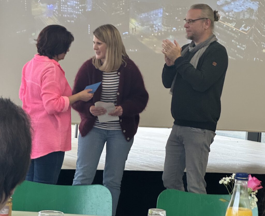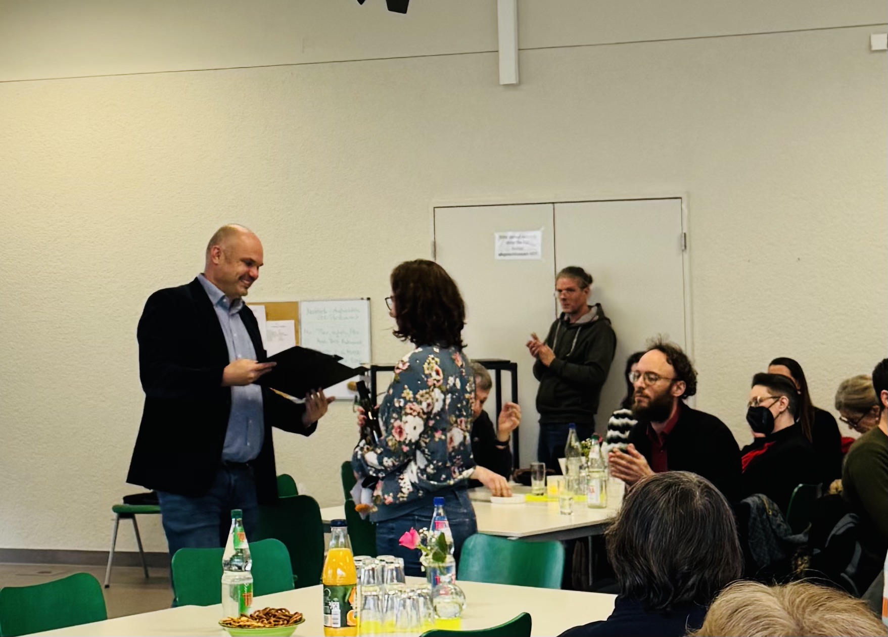 Heike Weiß hat sich in vielerlei Hinsicht an der Weiterentwicklung des SMG beteiligt, unter anderem durch ihr großartiges Wirken in verschiedenen Bereichen wie zum Beispiel „Offenes Lernen”. Auch außerhalb der Schule engagiert sich Heike in der Lehrerfortbildung. Ihre Arbeit in den Fachschaften Chemie, Biologie und NAWI war stets eine große Bereicherung und brachte innovative Projekte hervor. Die Kolleginnen und Kollegen verabschiedeten Heike mit emotionalen Worten und überreichten ihr tolle, kreative Geschenke.