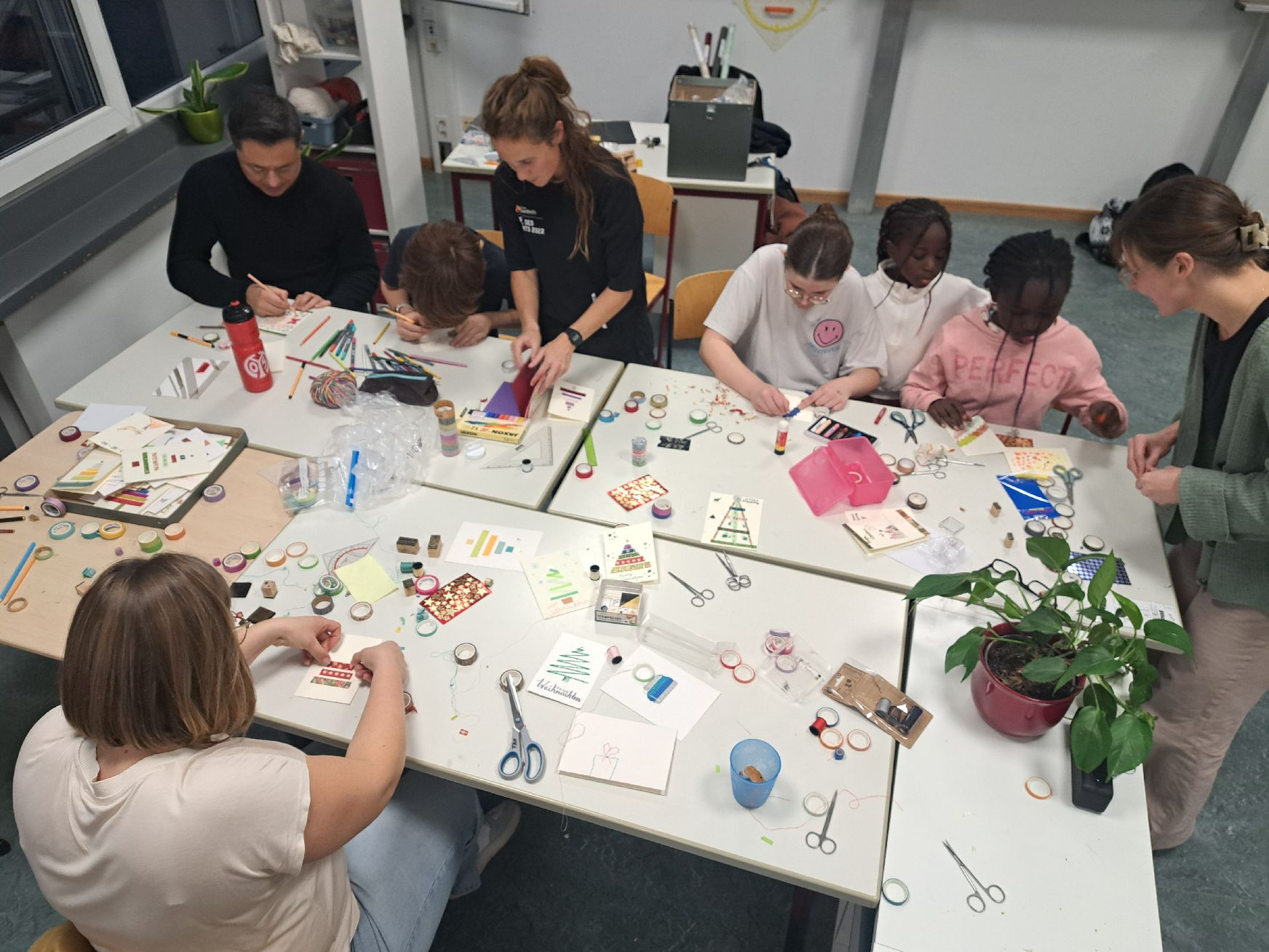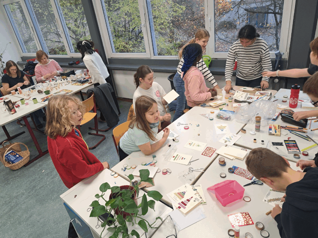 Am heutigen Freitagnachmittag, genau zwei Wochen vor dem Adventsbasar, verwandelte sich unsere Schule in eine kleine Weihnachtswerkstatt. Einige 5. und 6. Klassen kamen jeweils zusammen, um für den Adventsbasar zu basteln und gemeinsam etwas Gutes zu tun – und die Stimmung war so warmherzig, dass man sie fast greifen konnte. Ich selbst durfte die 6h begleiten und war beeindruckt von der zauberhaften Atmosphäre.