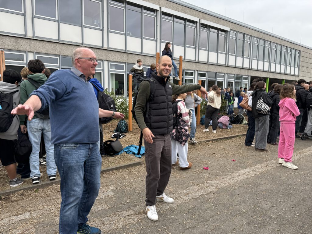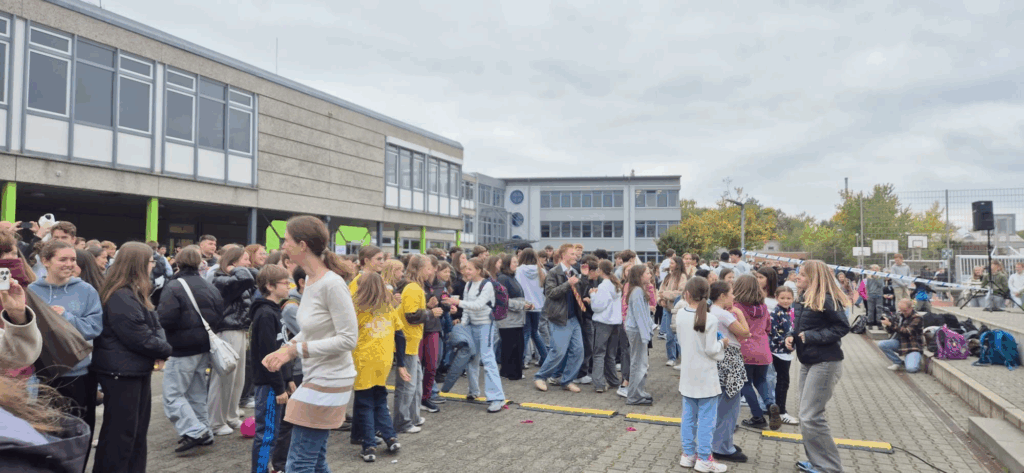 Um auch an unserer Schule ein Zeichen zu setzen, haben wir im Vorfeld dieses Tages, nämlich am Freitag, dem 10.10.2025 (letzter Schultag vor den Herbstferien), in der zweiten großen Pause auf dem Schulhof vor der Mensa eine spontane Tanzveranstaltung durchgeführt, zu der die Schülerinnen und Schüler sowie natürlich auch die Lehrerinnen und Lehrer des SMG eingeladen wurden.